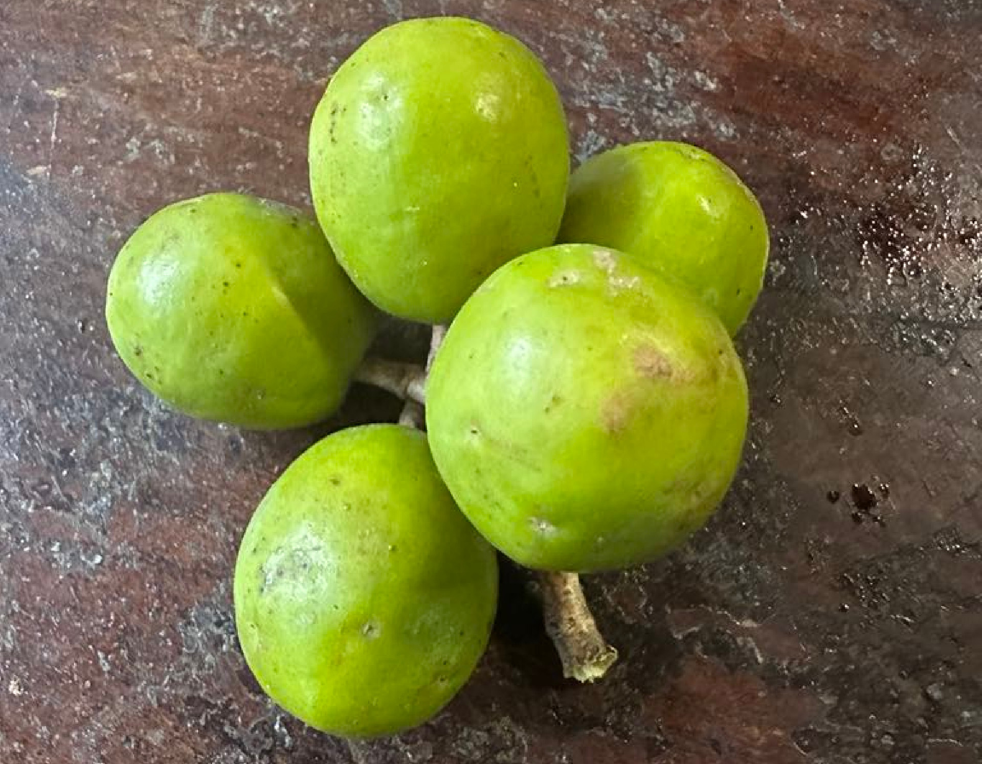Because he can’t speak or hear, he gestured to a beautiful tree in his yard and picked off a few of what they call “September plums,” hard little green fruit that soften and ripen. They’re called Hog Plum in some countries. He showed us how to eat them with his hand signals — just bite in and dip into chili or pepper — and brought us a bag to fill up. I cooked those with red snapper when they ripened. Next time I find some, I’ll keep them a little green and cure them like olives with fresh garlic.