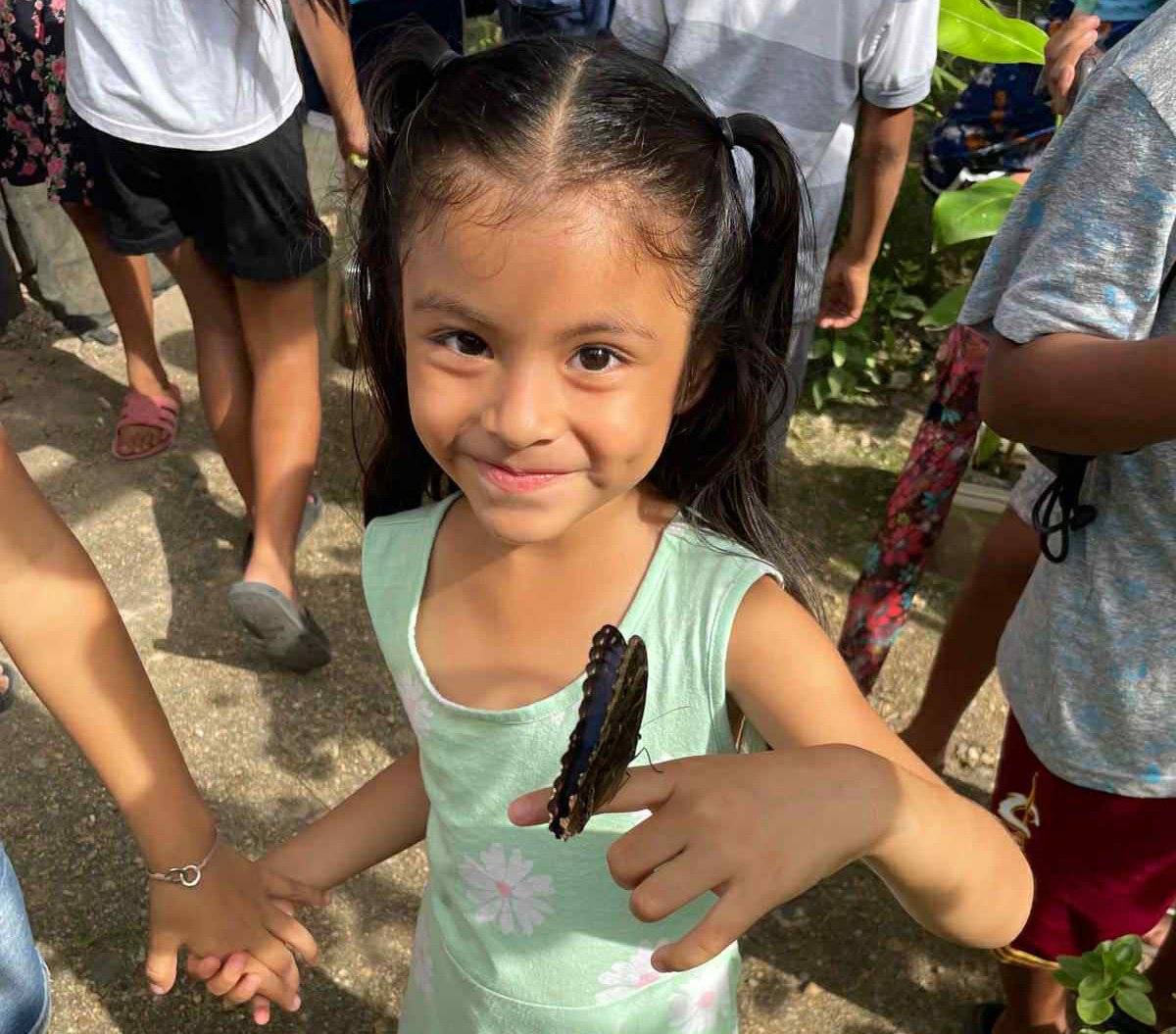 We were helping their children, and this was how they repaid us. The next year, we went on a field trip with about twenty kids to Oxmul Butterfly Farm, a short walk from that community center, by then the new library. Each child held a food-related token of appreciation and set it down on a table in front of the butterfly enclosure at the farm, paying for their entry and for the owner’s time and graciousness before stepping into the wonderful space filled with fluttering Blue Morphos and Turk’s-cap White-Skippers.