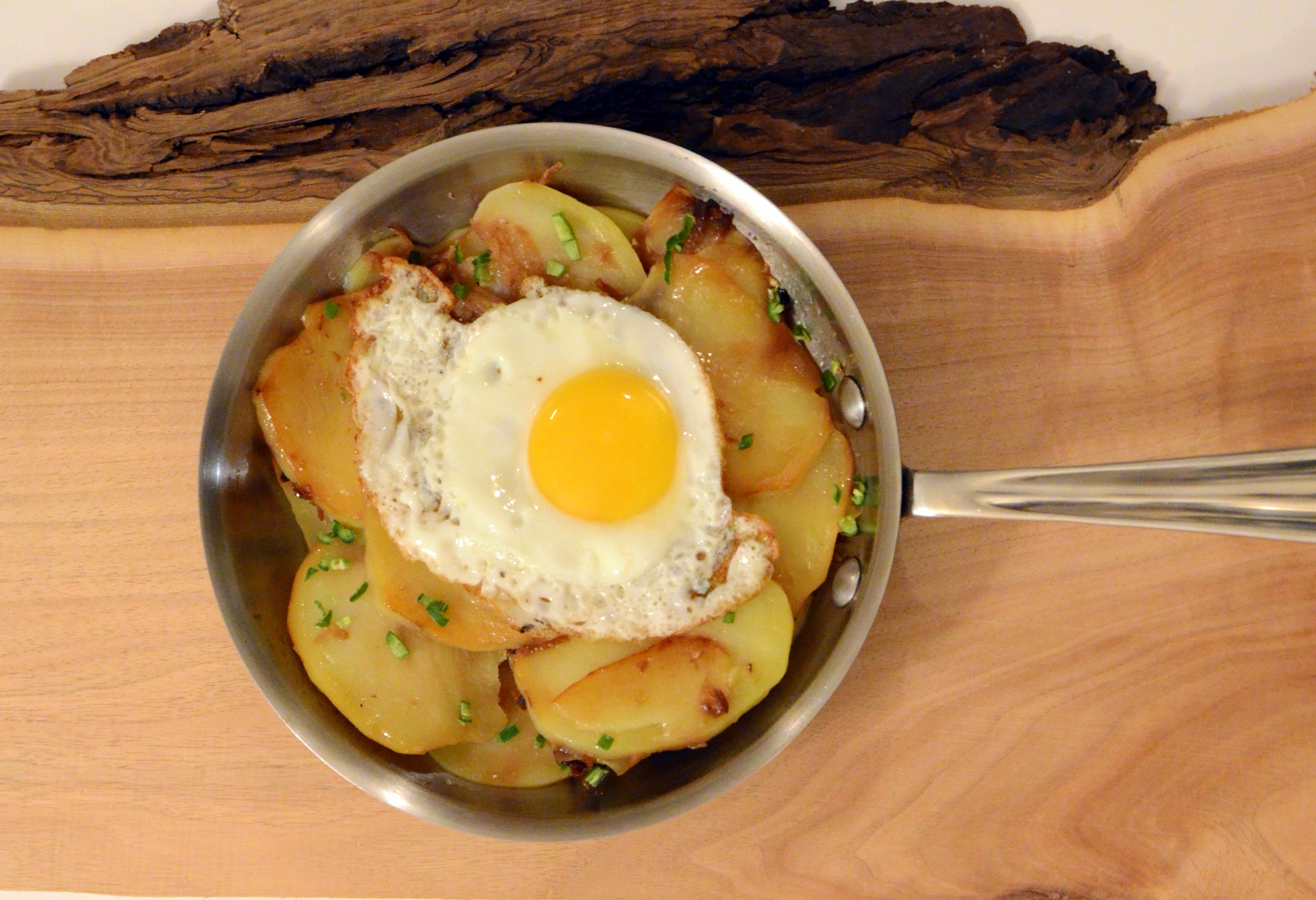 Cover and cook over low heat for 20 minutes. Uncover and, using a spatula, gently lift and turn sections of the potatoes to bring some onion down into the layers (don’t worry about a perfect flip). Cover again and cook until the potatoes are soft, about 10 minutes more.